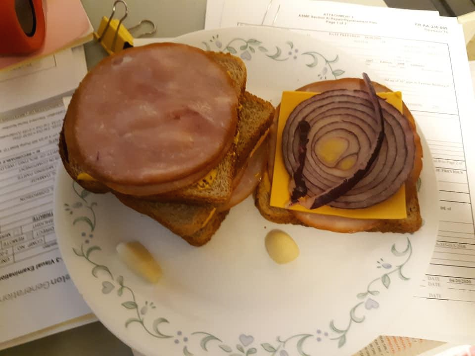 갓구운빵과 어제 먹고 남은 햄을 먹었다.