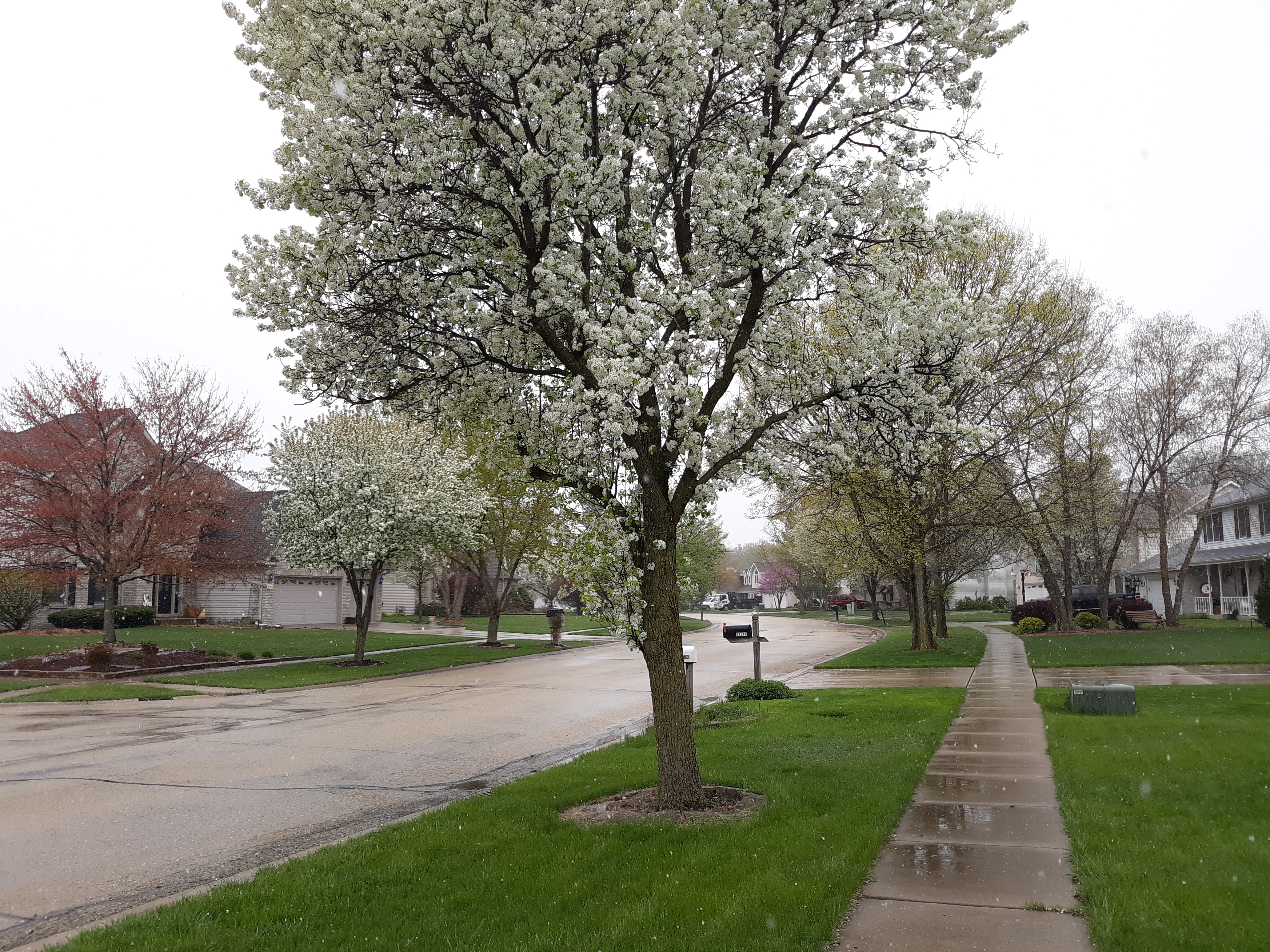기나긴 겨울 숨죽여 기다리다 어렵게 예쁜 꽃을 피웠는데 심술궂게 눈이 오네요. (4월 20일)