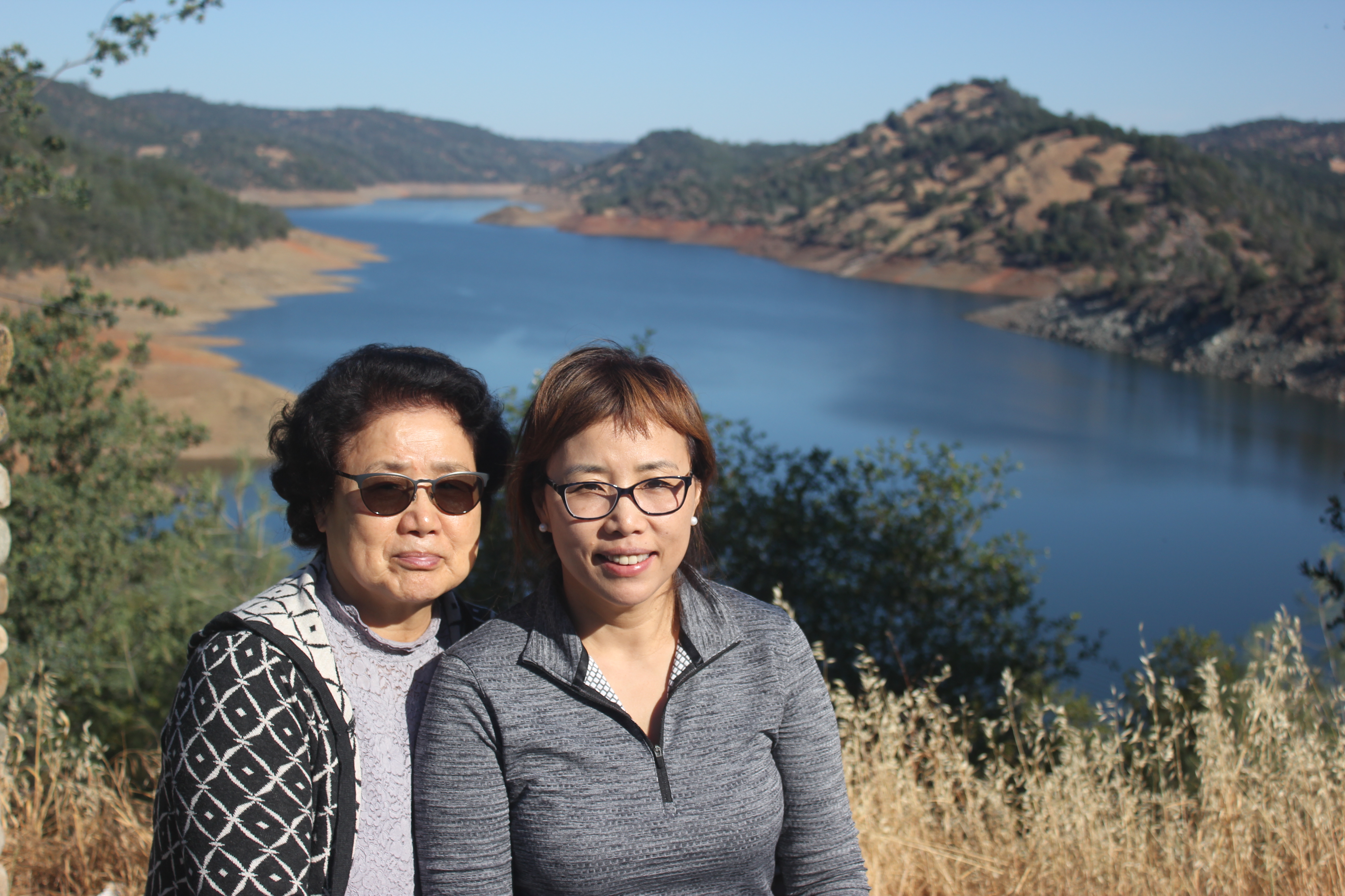 요세미티 가는 도중에 만난 아름다운 호수앞에서