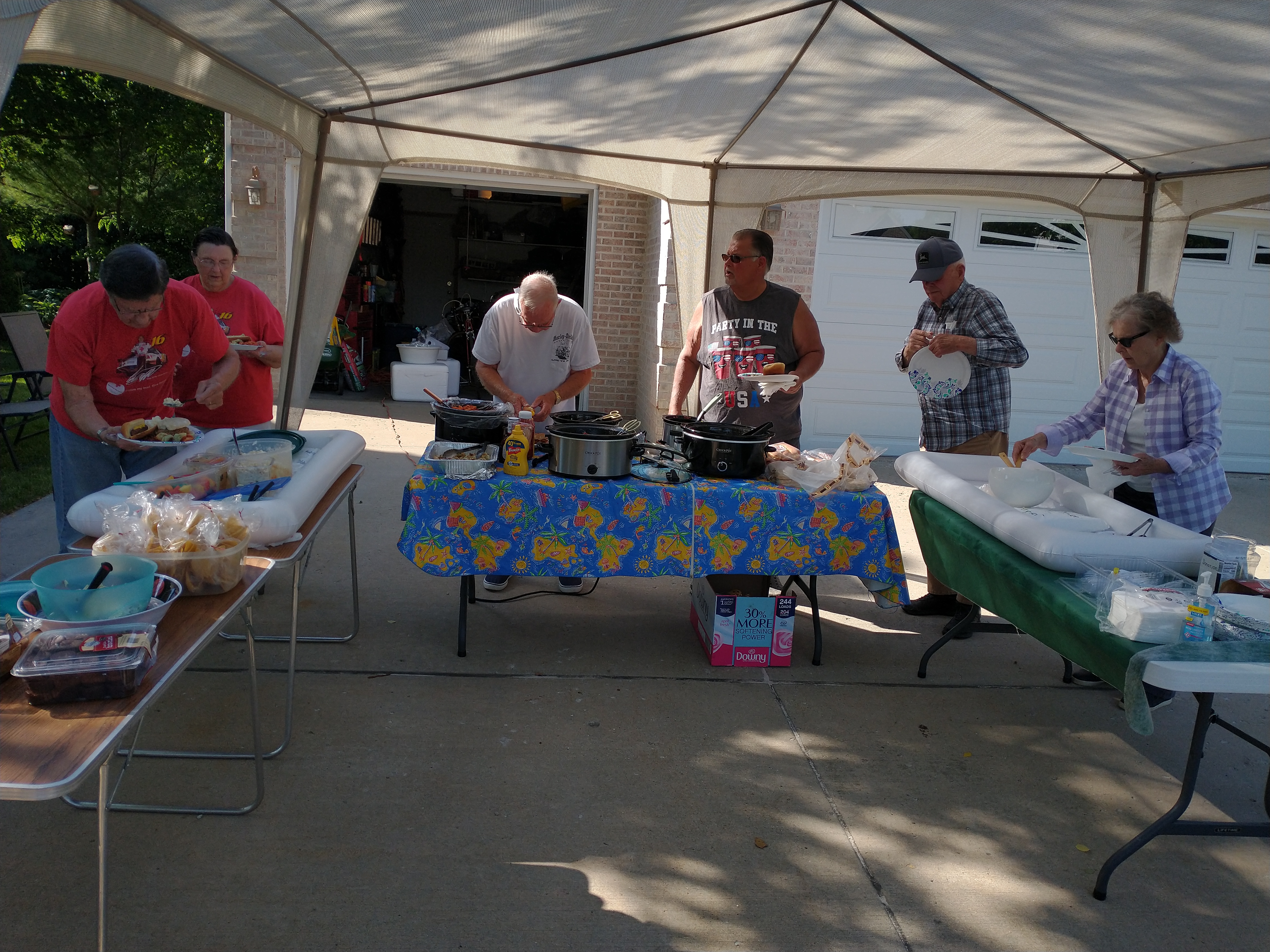 메인으로 바베큐와 핫도그가 제공되고 (이웃들이 기부)