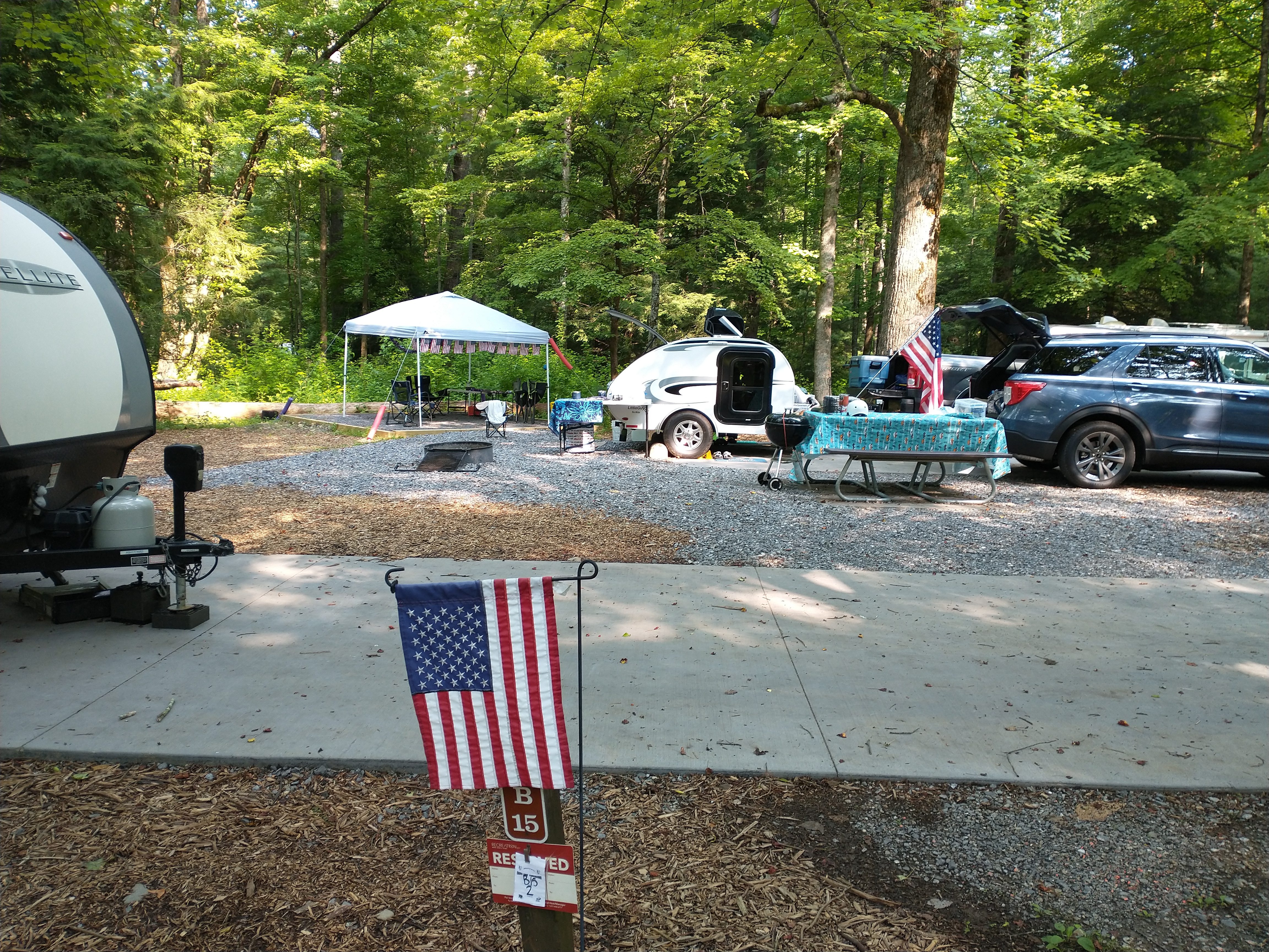 독립기념일 주말이라 성조기를 장식한 캠프들이 눈에 띄었다.