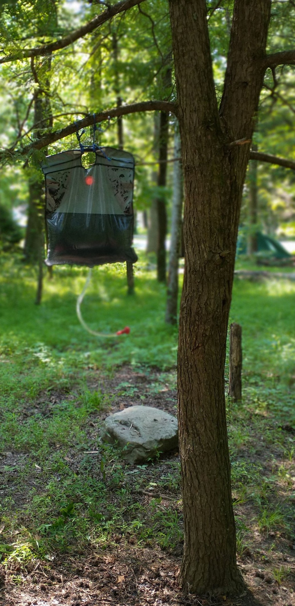 우리 텐트 뒤에 있는 나무에 설치해