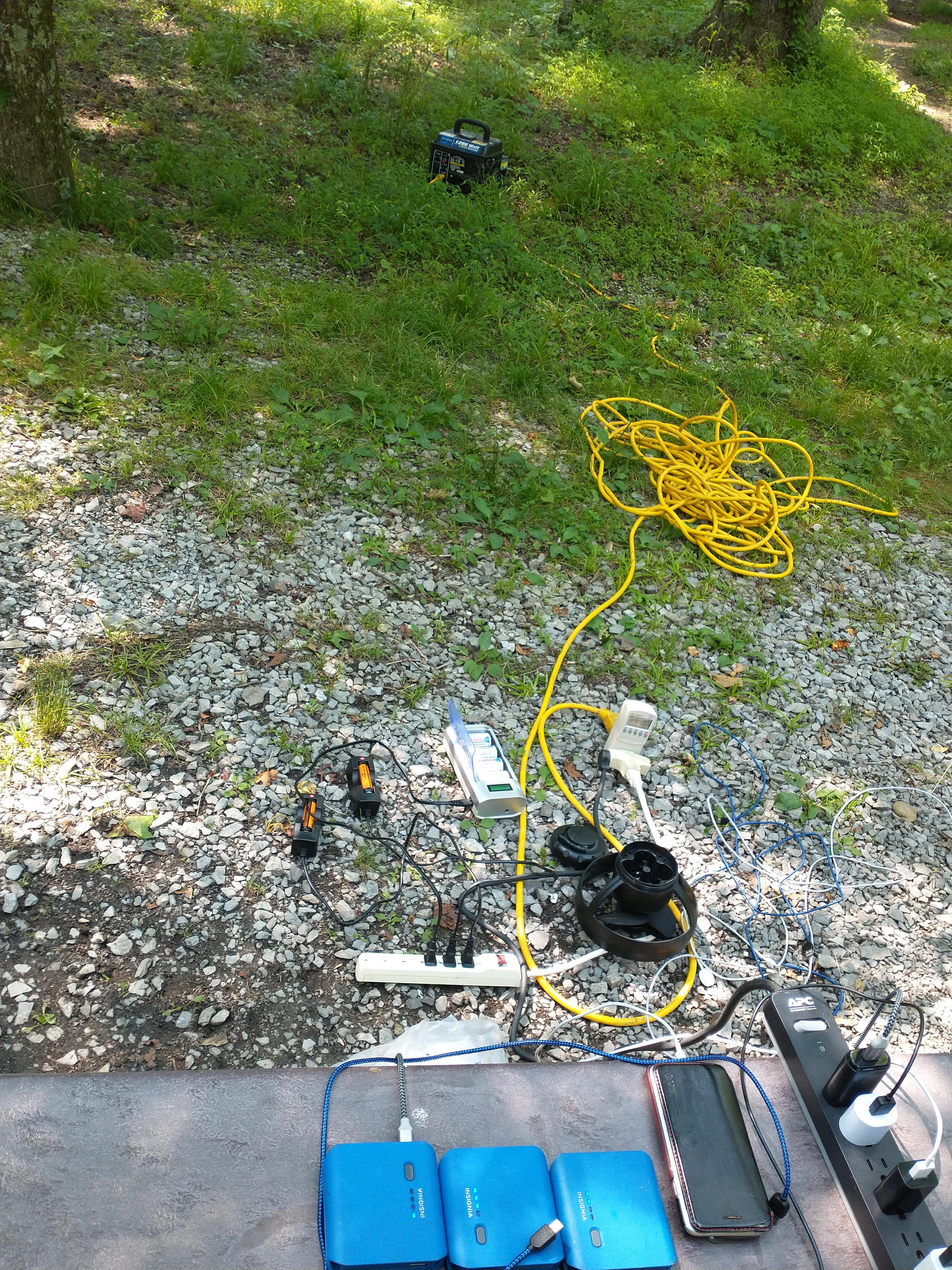 캠핑장에 전기가 없어 가정용 발전기를 가져와 충전