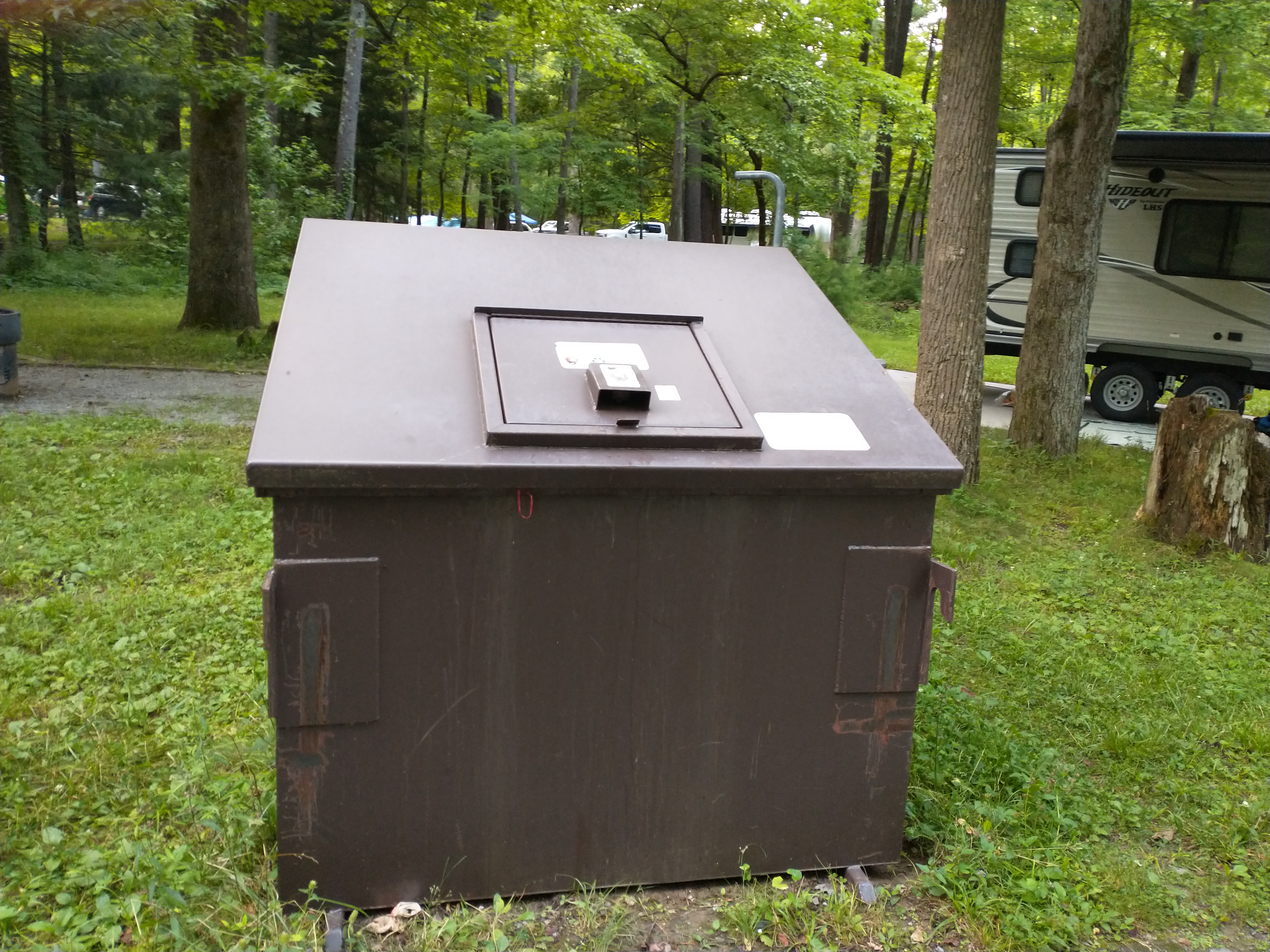 곰의 공격을 방어하기 위해 철통같이 무장된 쓰레기 박스