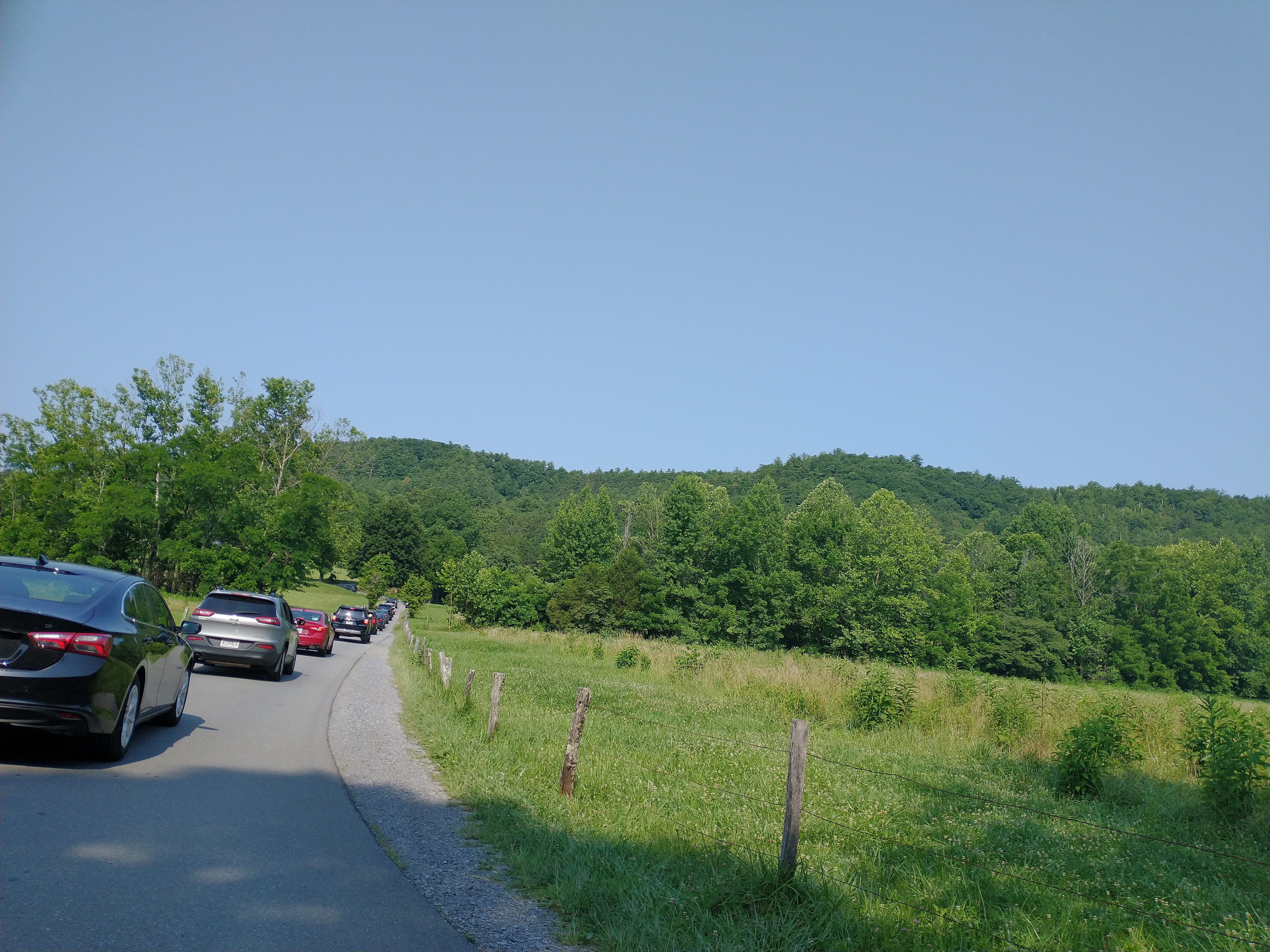 폭포 가는길에 20분이상을 많은 차들이 시속 9마일로 가야했다.