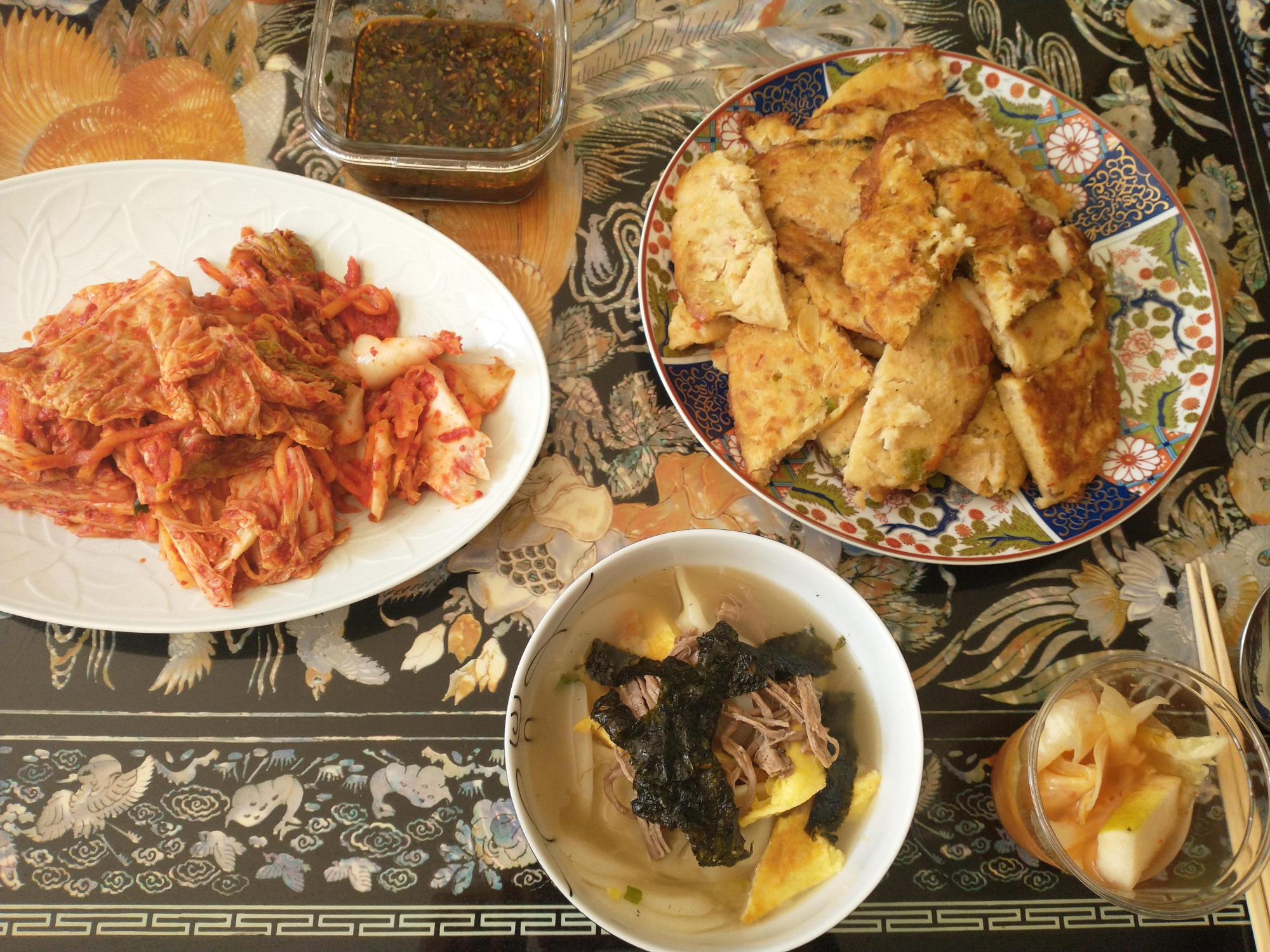 떡만두국과 맛있는 빈데떡을 대접받고.