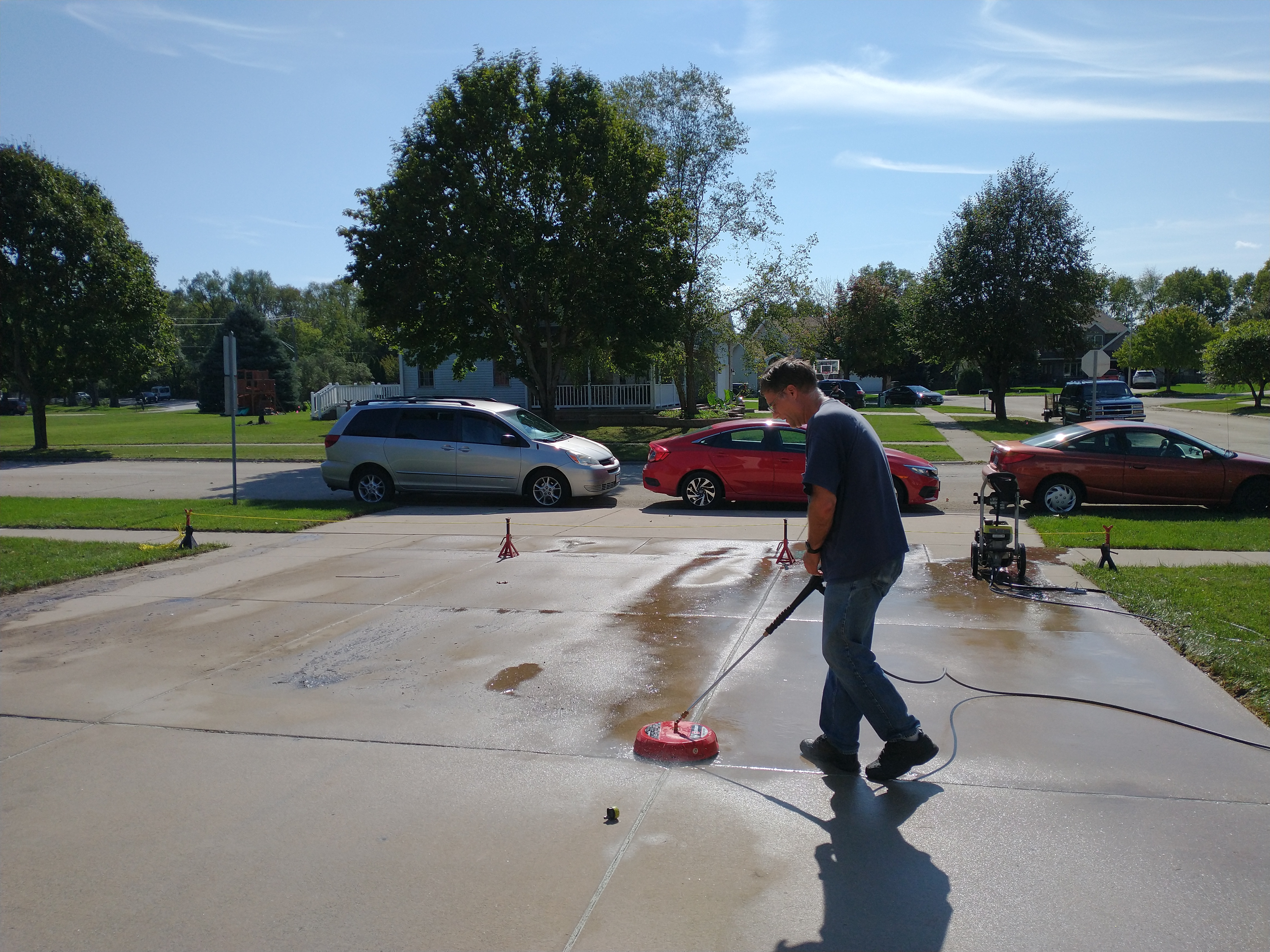 차고앞 드라이브 웨이 콘크리트를 보호하기 위해 1차 물청소부터