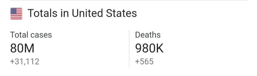 현재까지 인구 23% 가 감염되었고, 98만명 사망
