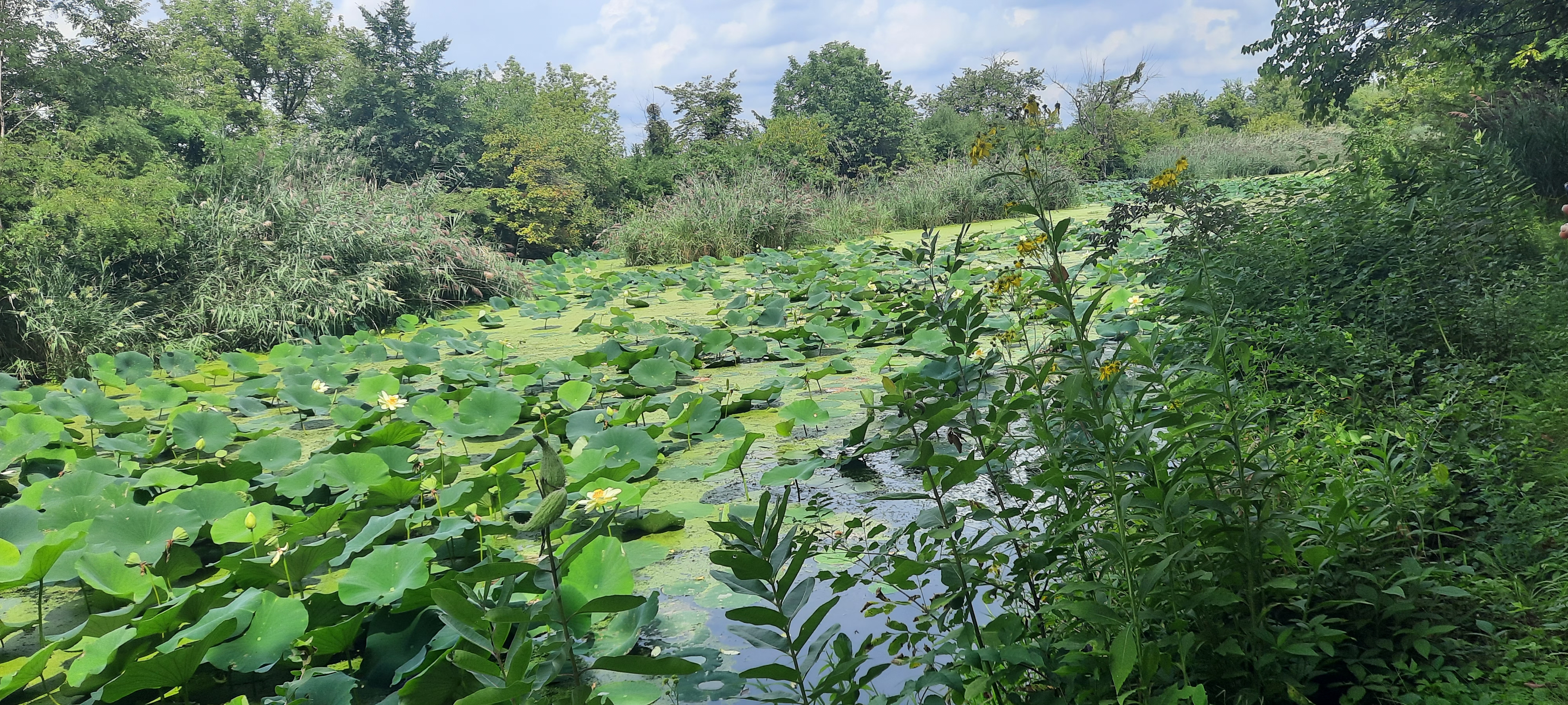 트레일 길 옆 강에 핀 연꽃들