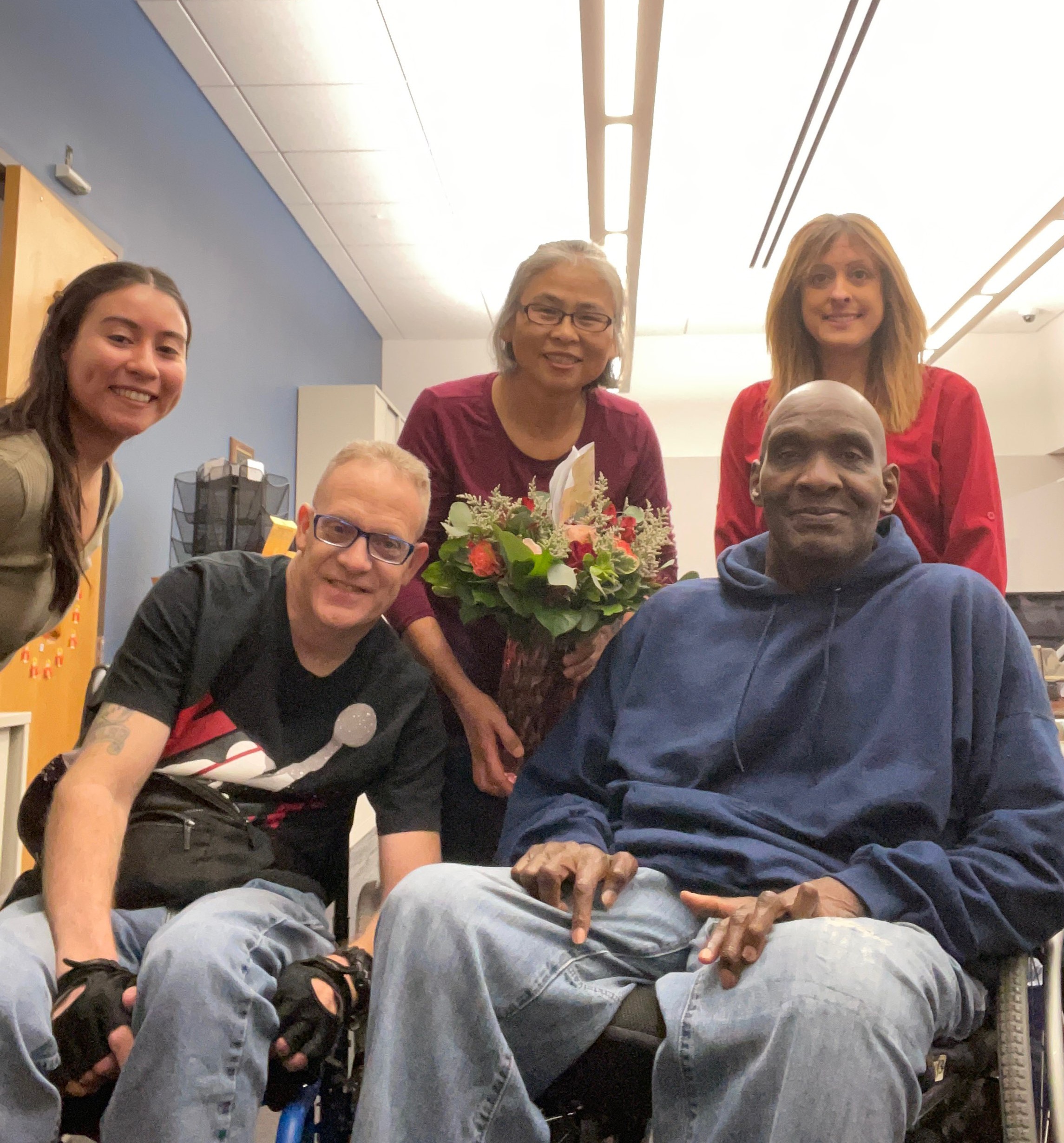 휠체어를 이용하고 있다.