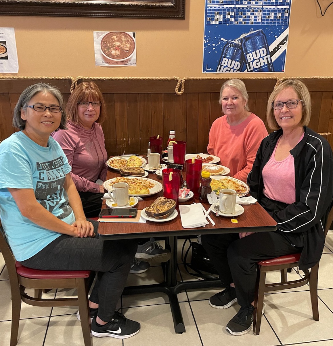 데이빗이 생일 선물로 엄마와 엄마 친구들에게 저녁을 샀다.