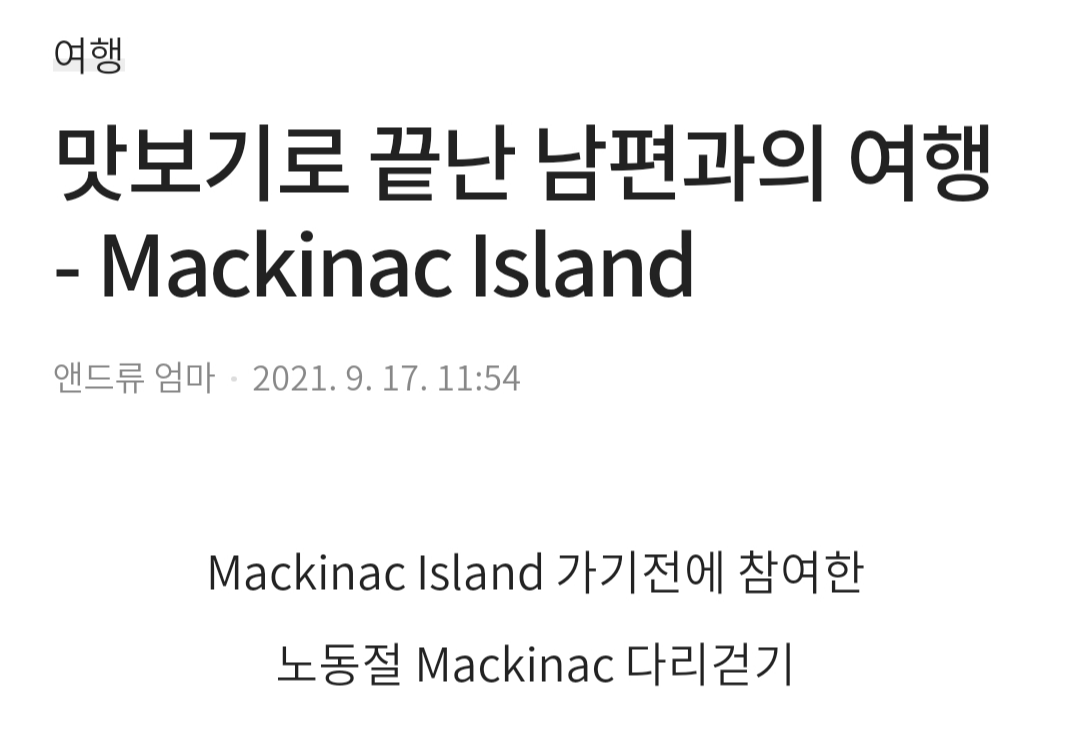 언젠가 여행지 알아보다 Mackinac Island를 검색했더니