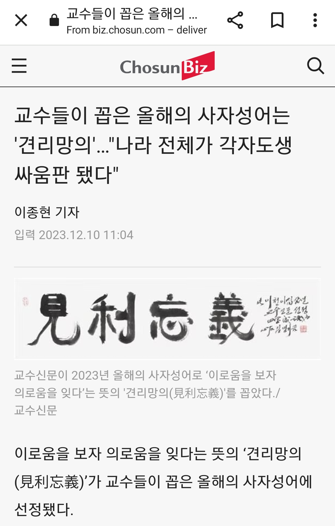 사사로운 이로움보다 의로움을 추구해야 하거늘.