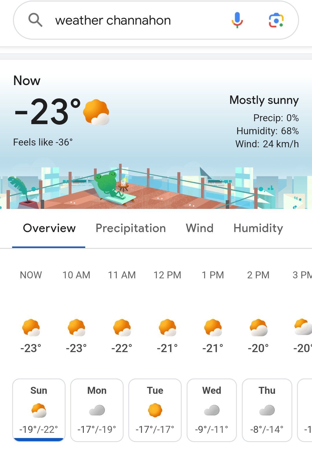 영하 23도, 체감온도 영하 36도