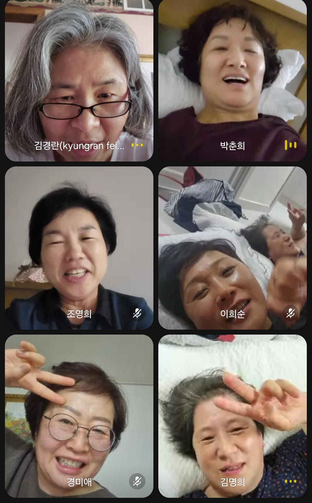 저녁에 만나 1박을 해 단체 영상 통화를 했다.