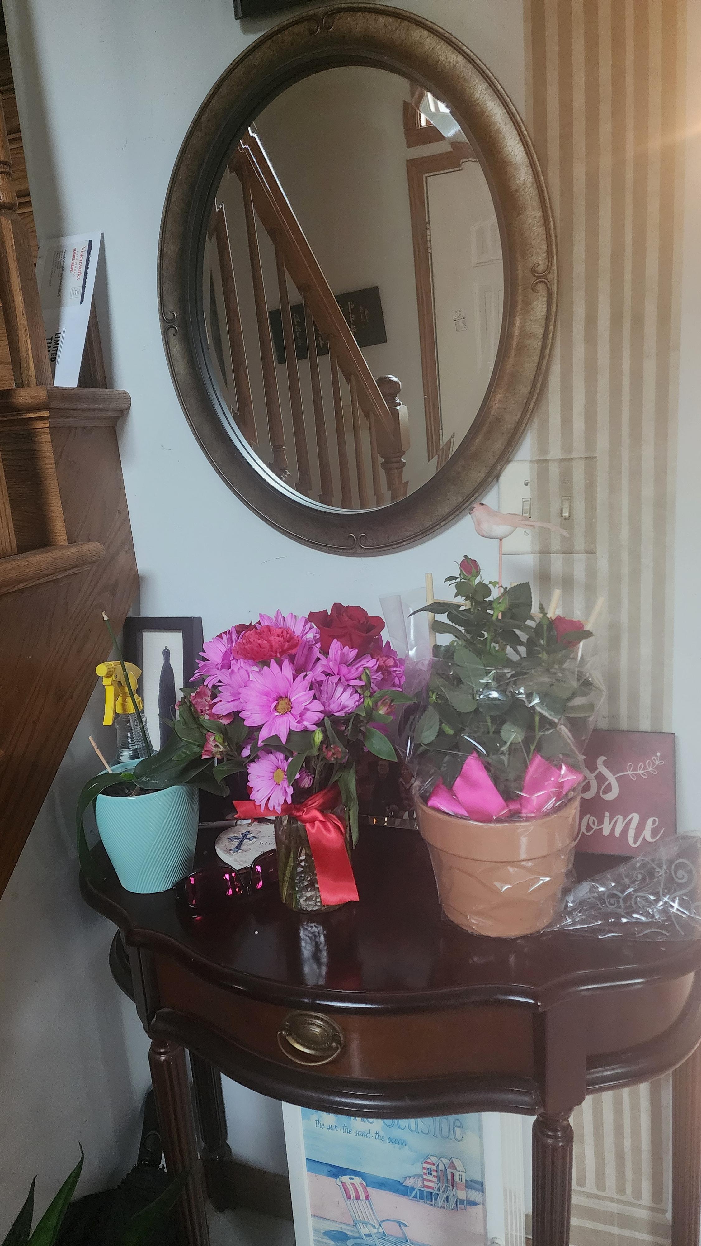 손 크게 장미 화분에 엄청 큰 쿠키 츄레일까지 사 왔다.