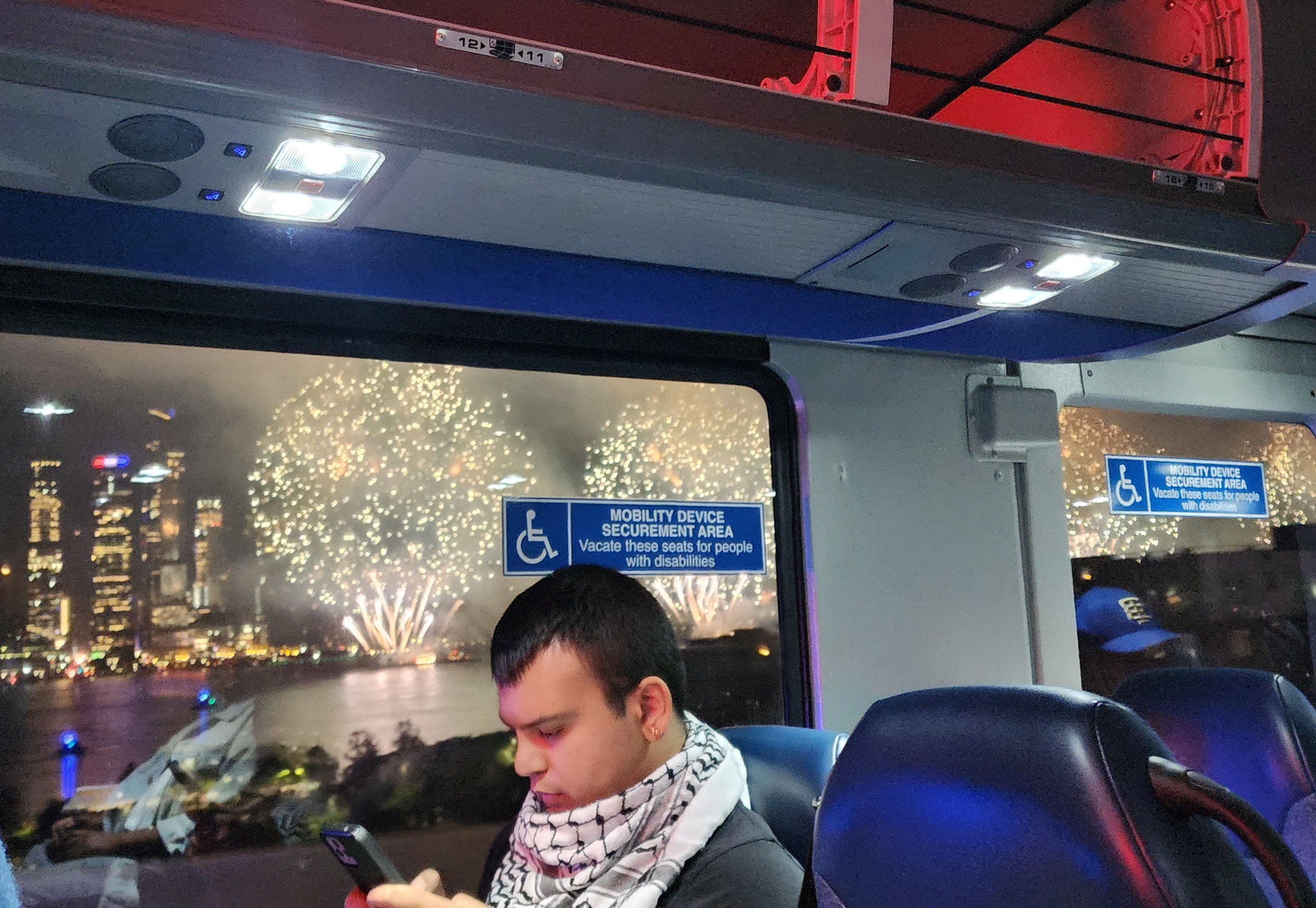 반대좌석이 강에서 하는 불꽃놀이를 볼 수 있었다.