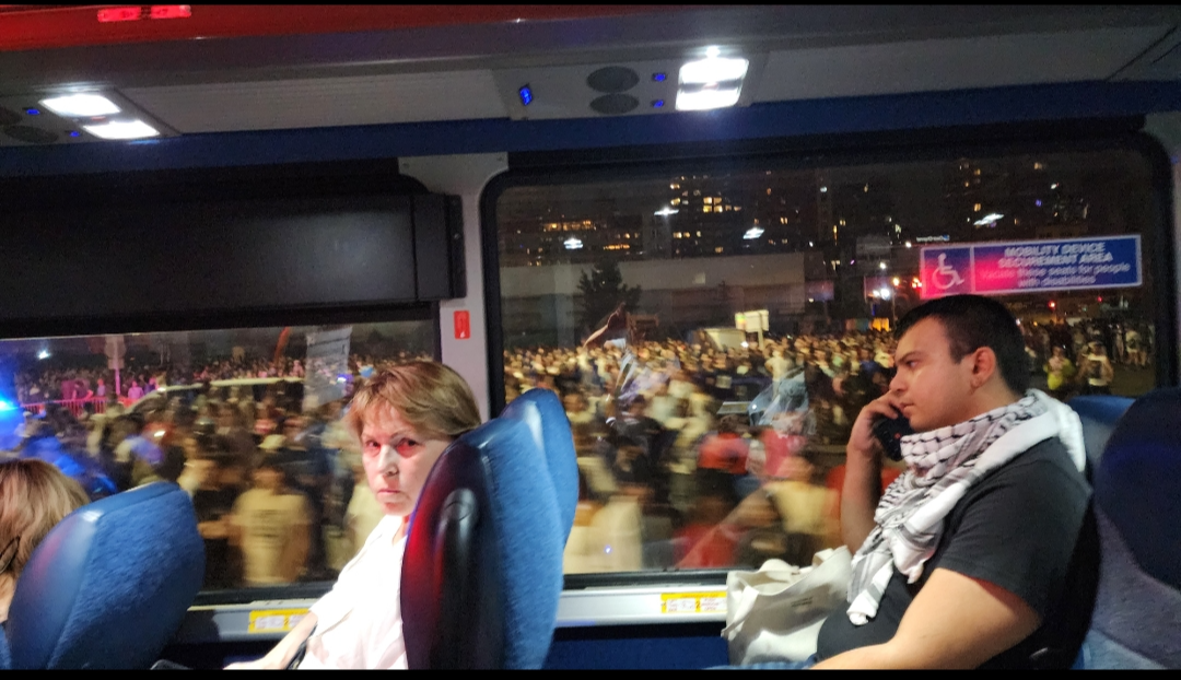 버스 창밖으로 보이는 엄청난 인파 - 불꽃놀이를 보기 위해 모였는 듯.