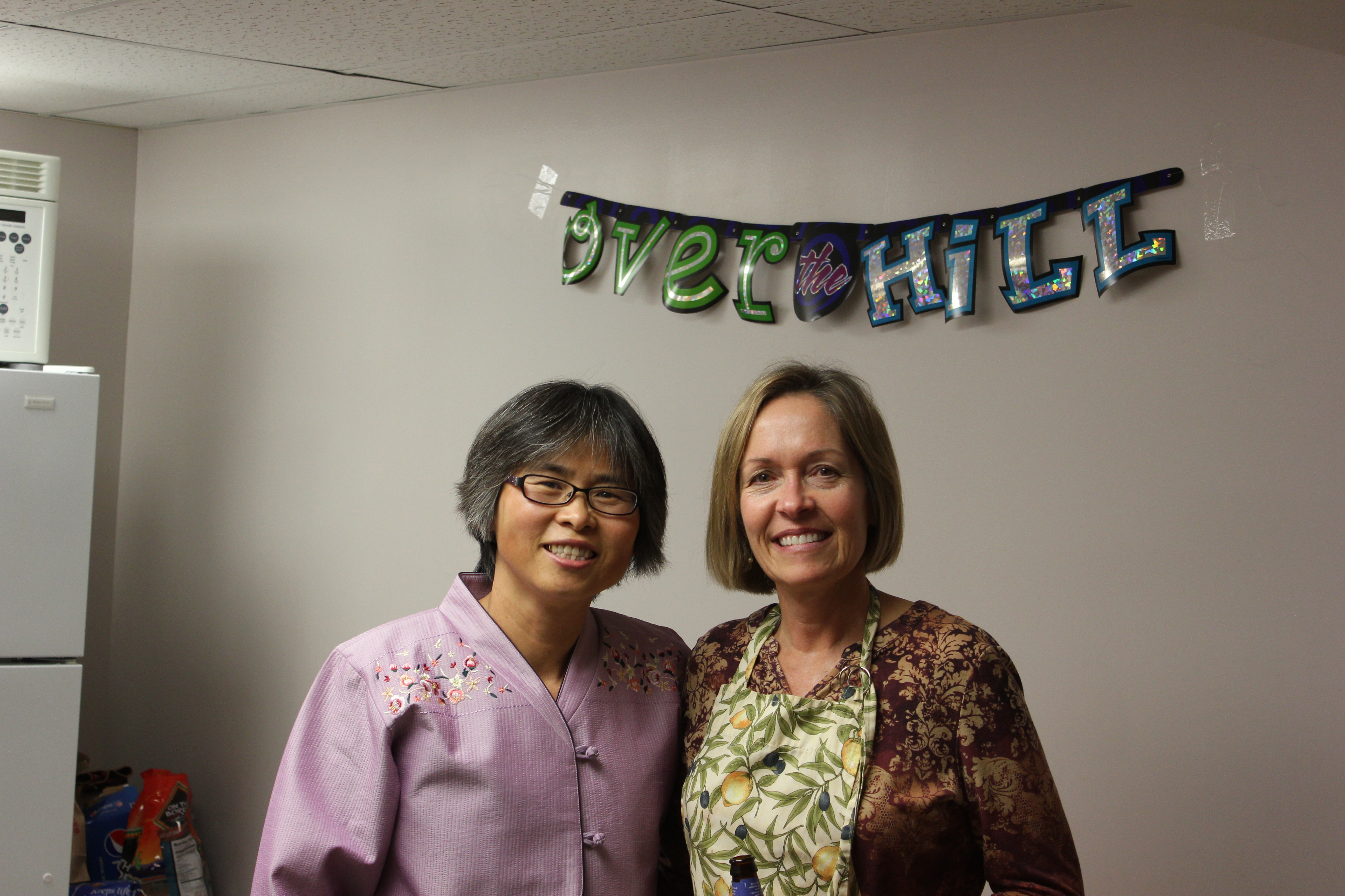케이크는 옛 이웃인 메리 (내 뒤)가 만들었다고.