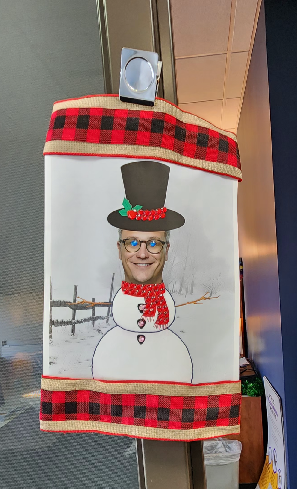 옆 사무실은 직원들은 보스의 사무실 입구를 보스 사진으로 저렇게 장식했다