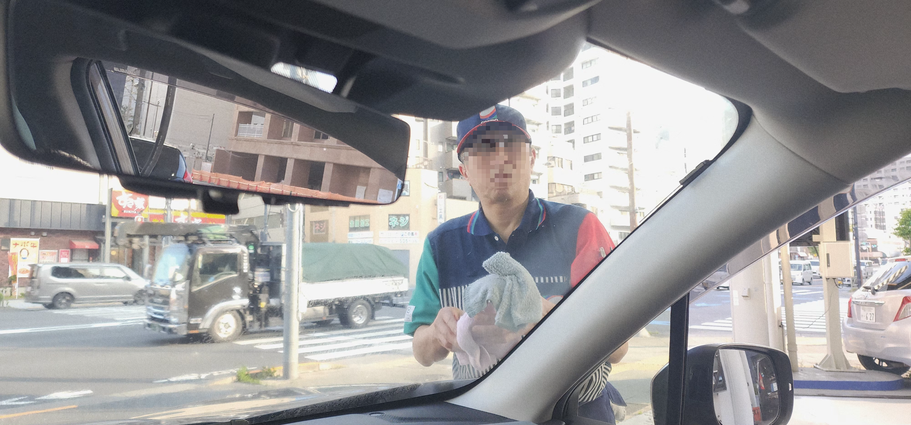 기름 넣는 동안, 자동차 유리 닦아주던