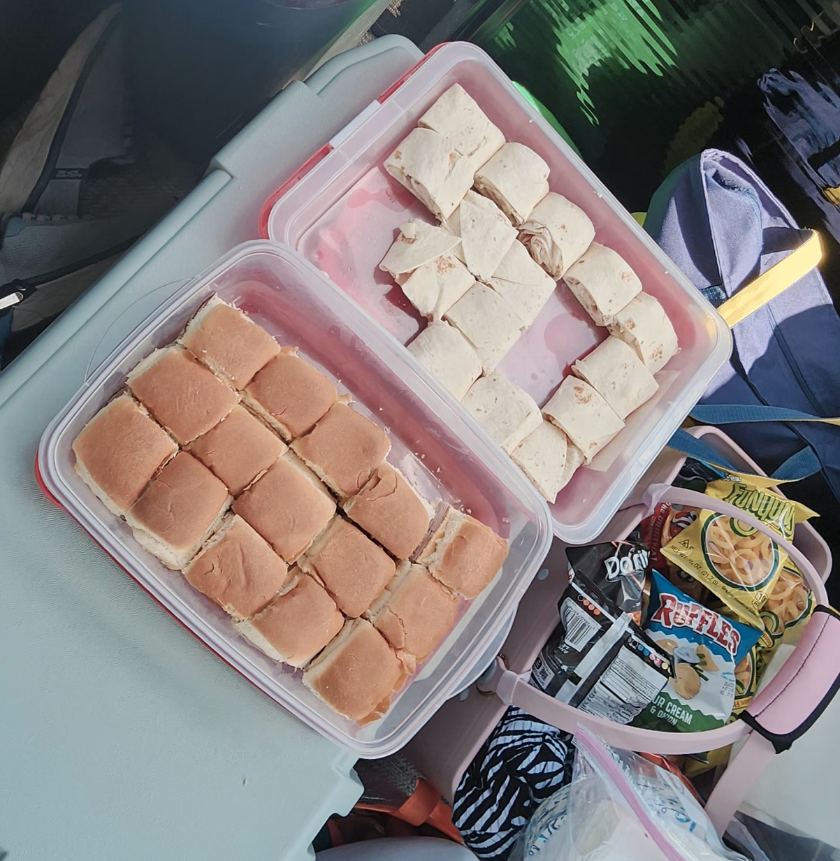 트레이쉬가 샌드위치와 음료수, 칩,