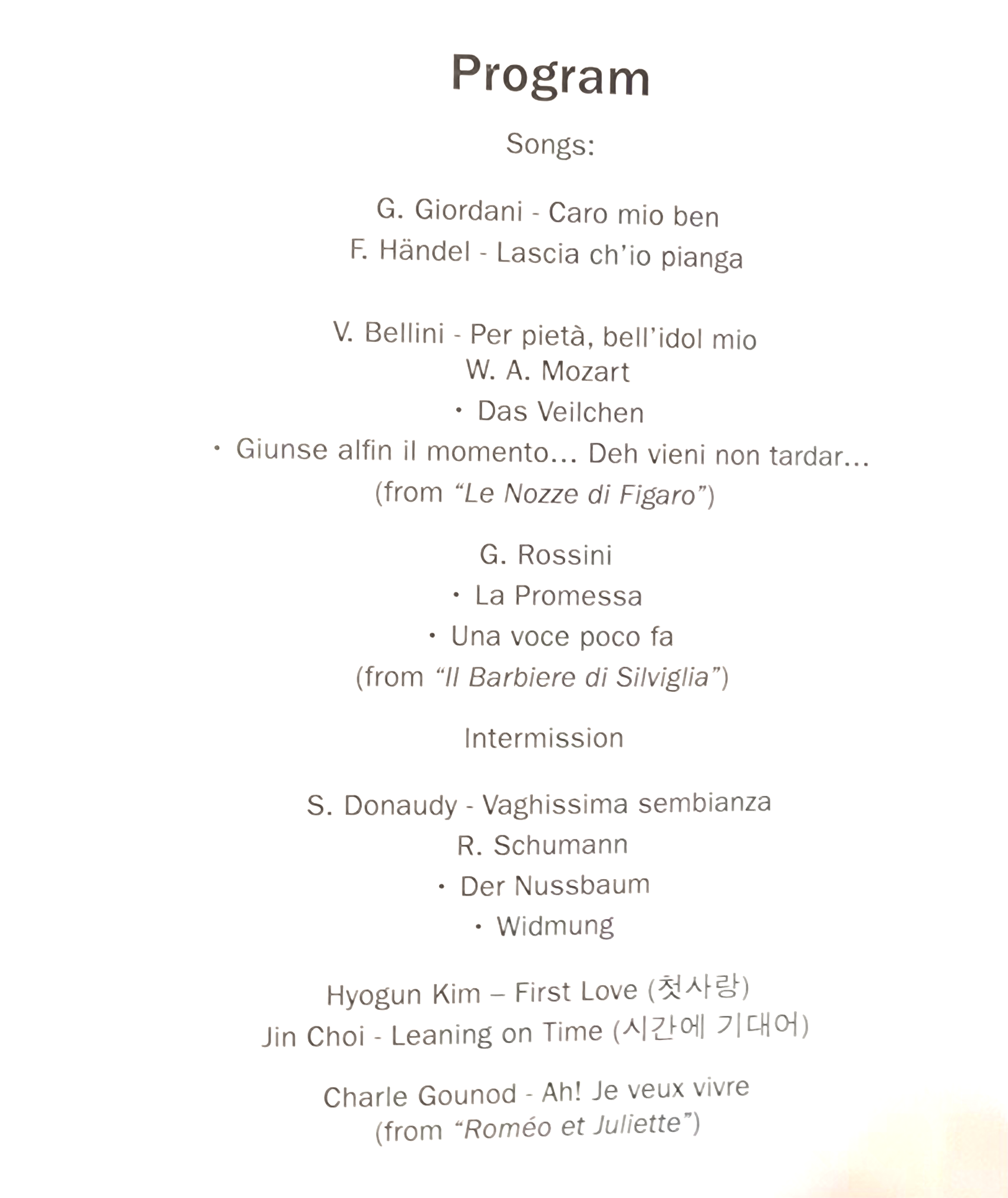 한국 가곡을 많이 할 수 없었던 게 아쉬웠다.