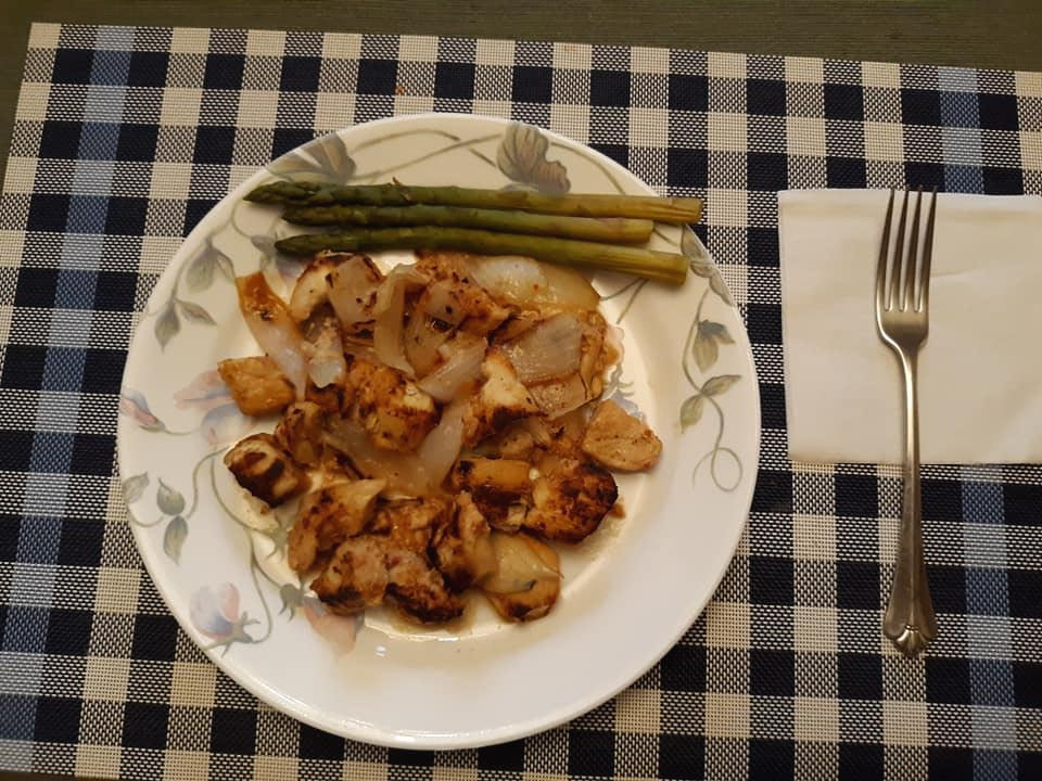 이탈리안 셀러드 드레싱에 절인 닭가슴살과 양파, 아스파라가스