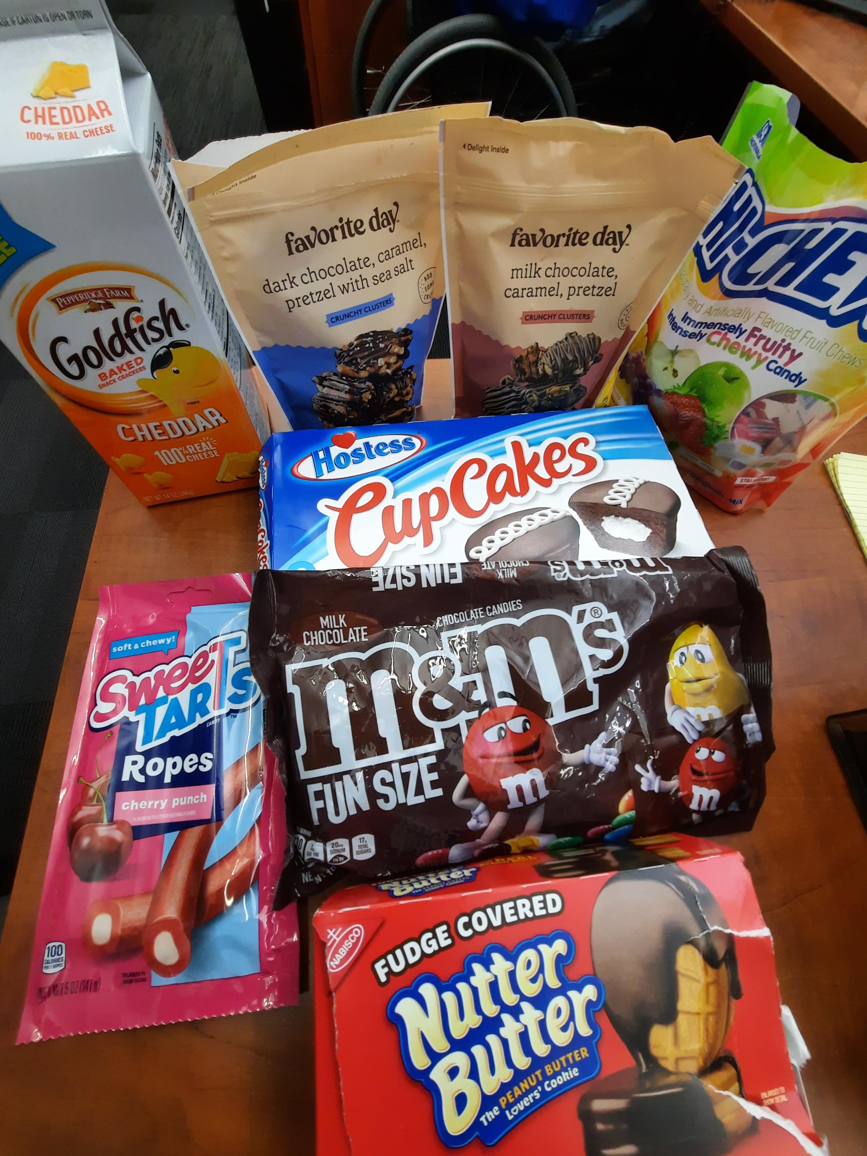 과자내기에서 딴 과자들