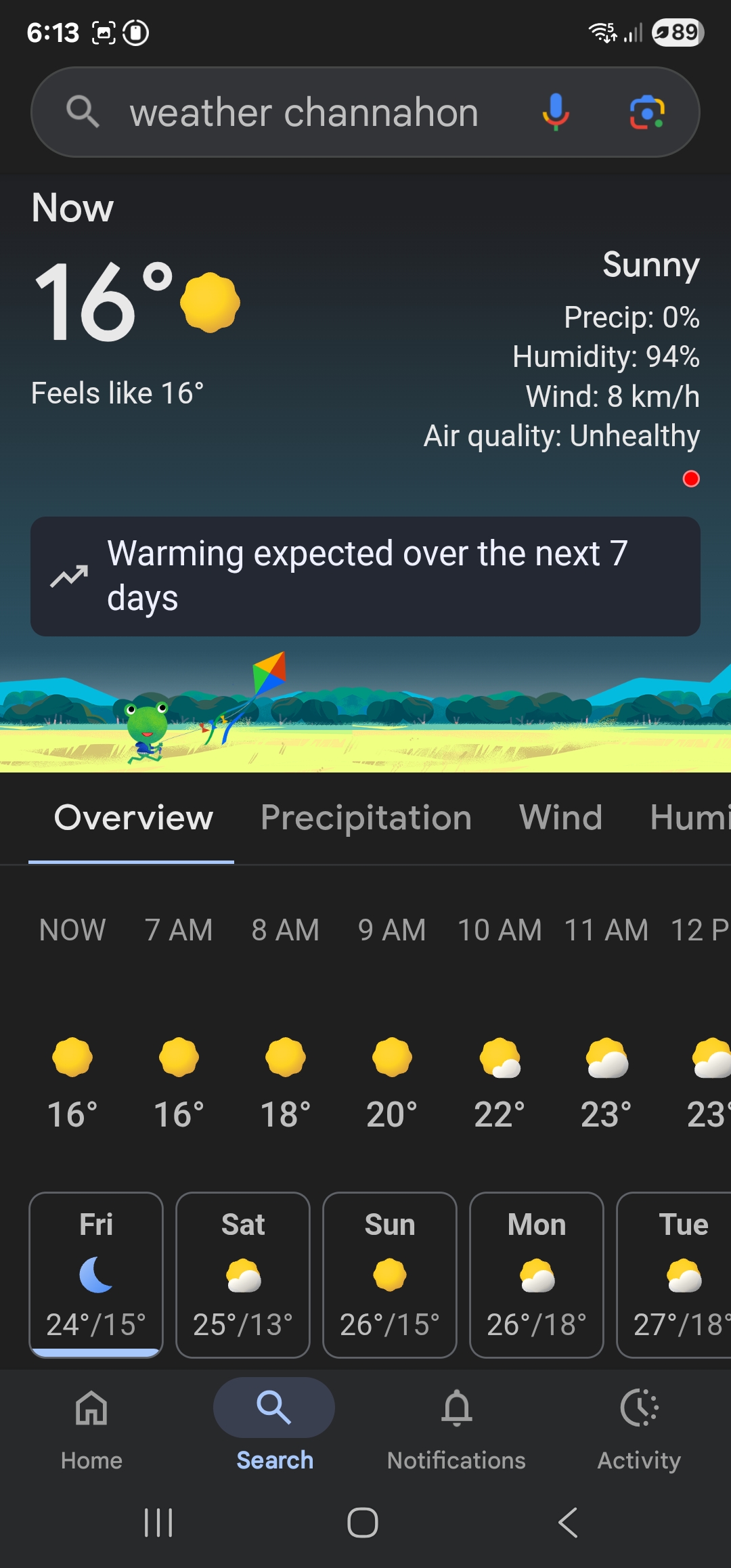 금요일부터 이른 아침에 기온이 영상 15도로 떨어져